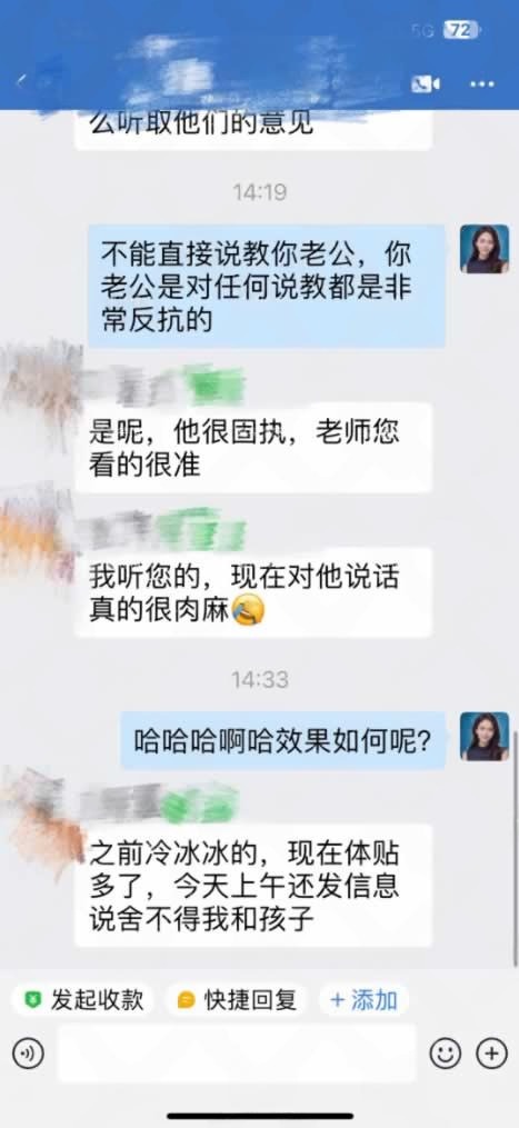 该女学员一直苦恼于老公不给家用。在这种困境下,她找到了我们。老师对她进行了手把手的话术指导...